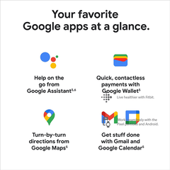 Fitbit health and fitness · Always-on display · Google Maps · Google Wallet9 · Google Assistant · Messages and notifications · YouTube Music · NFC · Emergency SOS10 · International emergency calling11 · Interchangeable band design · Fall detection (up to 32 g-forces)11