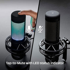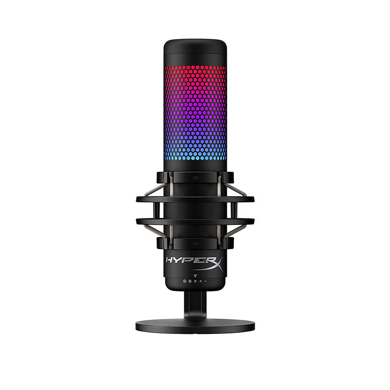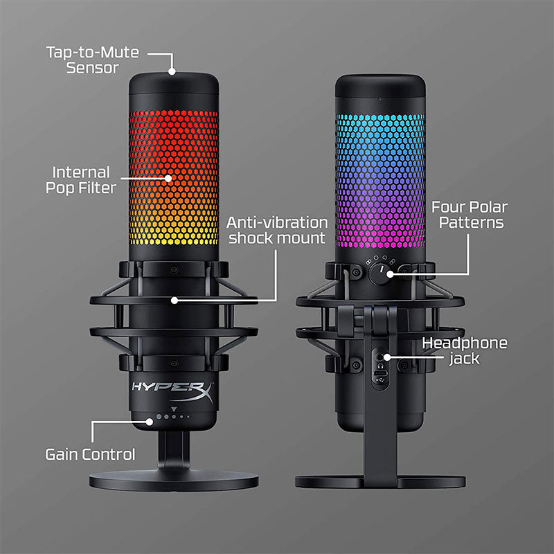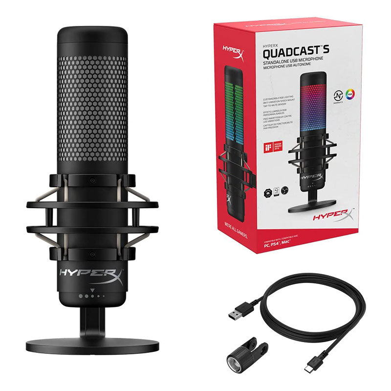 The HyperX QuadCast S is a USB condenser microphone that both sounds great and looks great. The supremely stunning RGB lighting and dynamic effects will add style and flair to any stream or setup, and is customizable via HyperX Ngenuity software. The QuadCast S is an all-inclusive mic, featuring an anti-vibration shock mount to help quiet the rumbles of daily life and a built-in pop filter to muffle plosive sounds. Instantly know your mic status with the LED indicator, and simply tap-to-mute to avoid awkward broadcasting accidents. With four selectable polar patterns, this mic’s prepared for nearly any recording situation and also features a gain control dial to quickly regulate input sensitivity. The included mount adapter fits 3/8” and 5/8” thread sizes, compatible with most stands. QuadCast S is certified by Discord and TeamSpeak so you can ensure that your microphone is broadcasting loud and clear for all your followers and listeners, and you can also monitor your mic in real time using the convenient headphone jack on the back of the mic. It’s multi-platform compatible, so you can deliver quality sound output whether you’re connecting to a PC, PS4, or Mac.