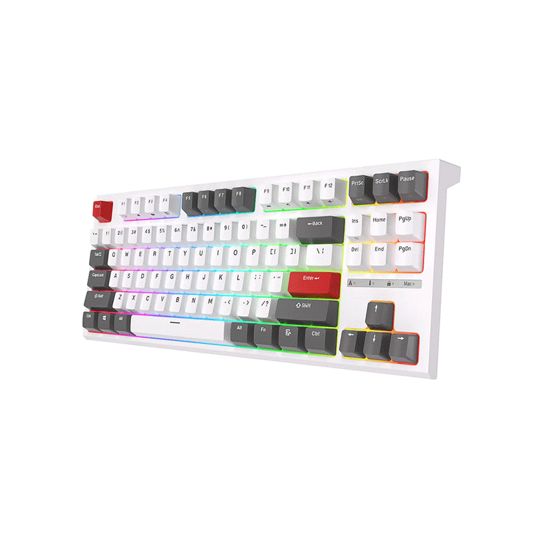RGB TKL Keyboard - 16.8 million RGB colors light the fire, 8 dynamic backlit modes and 9 custom backlit modes give you a hard time choosing. Brightness and glowing speed adjustable will light up your vibe perfectly.