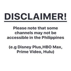"Please note that some channels may not be accessible in the Philippines" (e.g Disney Plus,HBO Max, Prime Video, Hulu)