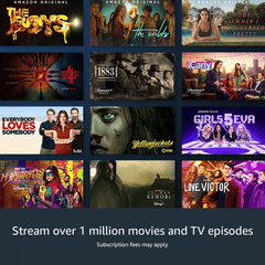 Stream more than 1 million movies and TV episodes from Netflix, Prime Video, Disney+, Peacock, and more, plus listen to millions of songs. Subscription fees may apply.