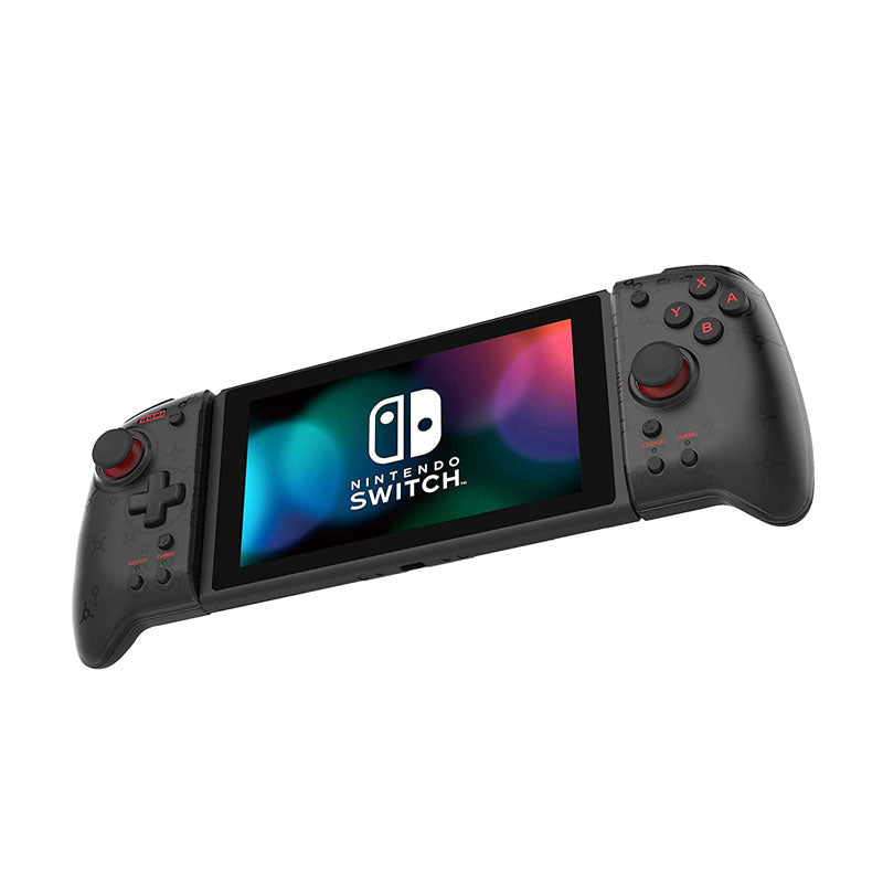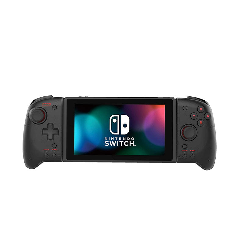 Enjoy the full-size controller experience in handheld mode with the HORI Split Pad Pro! Featuring full-size analog sticks, a precision D-pad, and large shoulder buttons designed for comfort and accuracy, even during marathon gaming sessions. Advanced features include assignable rear triggers, Turbo functionally, and more. Perfect for high-pace action titles and many other genres. Enhance your gaming experience with the Split Pad Pro! (Does not include Motion Controls, HD Rumble, NFC, or IR camera.) Officially Licensed by Nintendo