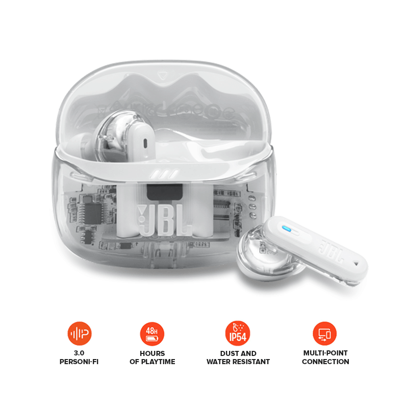 Take on your day one song at a time with JBL Tune Beam 2 true wireless earbuds featuring Adaptive Noise Cancelling. They deliver up to 48 hours of exceptional JBL Pure Bass Sound and JBL Spatial Sound, while the ergonomic (and water and dust resistant) design gives you all-day comfort in any weather. Enjoy perfect-sounding calls without ambient noise, all managed using intuitive touch controls. With Adaptive Noise Cancelling and Smart Ambient technology, you can tune out the world, or choose how much you engage with your surroundings. You can even personalize your sound experience with the JBL Headphones app and tailor audio around you with Personi-Fi 3.0. And with JBL's iconic ghost design, the aesthetics are as great as the technology. Pop in the JBL Tune Beam 2 and experience your world your way.
