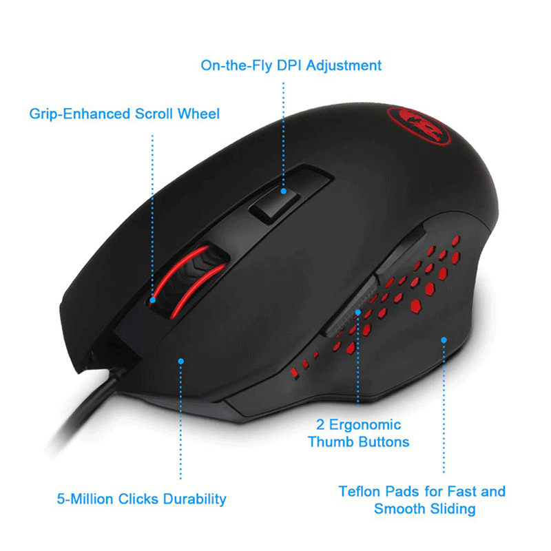 Wide rubberized backlit scroll wheel of 8 mm width: Widened scroll wheel with special ribbed protector make the mouse control easier. The shape and the place of the scroll wheel are optimal for simultaneous movements of index finger from the left button to the wheel back and forth. High durability cord. 6 programmable buttons including 2 thumb buttons: 2 customizable thumb buttons allow to adjust mouse for its user's needs. Textured surface of the upper button decreases the risk of accidental «blind» hit. High precision optical sensor. DPI level indication: The chosen level of cursor speed is indicated by the color of the scroll wheel. Elongated Teflon feet: Specially invented Teflon formula ensures excellent gliding. Thanks to enlarged feet surface, balanced feet height and optimal place the mouse moves strictly horizontally. Stable operation even on high speed. Cursor speed control: Cursor speed can be adjusted on any mouse keys. 4 DPI levels are supported and each level can be customized accurately to your needs.