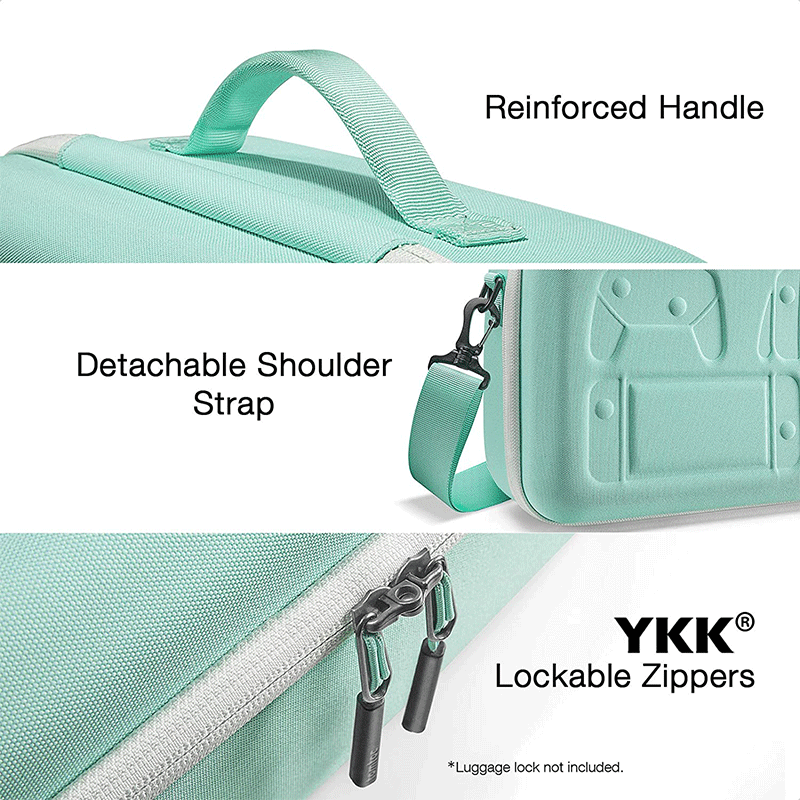 Not only organize your Nintendo Switch console and all accessories in order at home, this large storage case is also perfect for playing games with friends together outside thanks to its comfortable handle and an attachable shoulder strap. Great summer vacation!