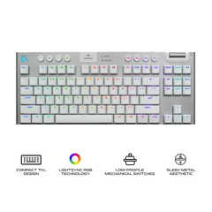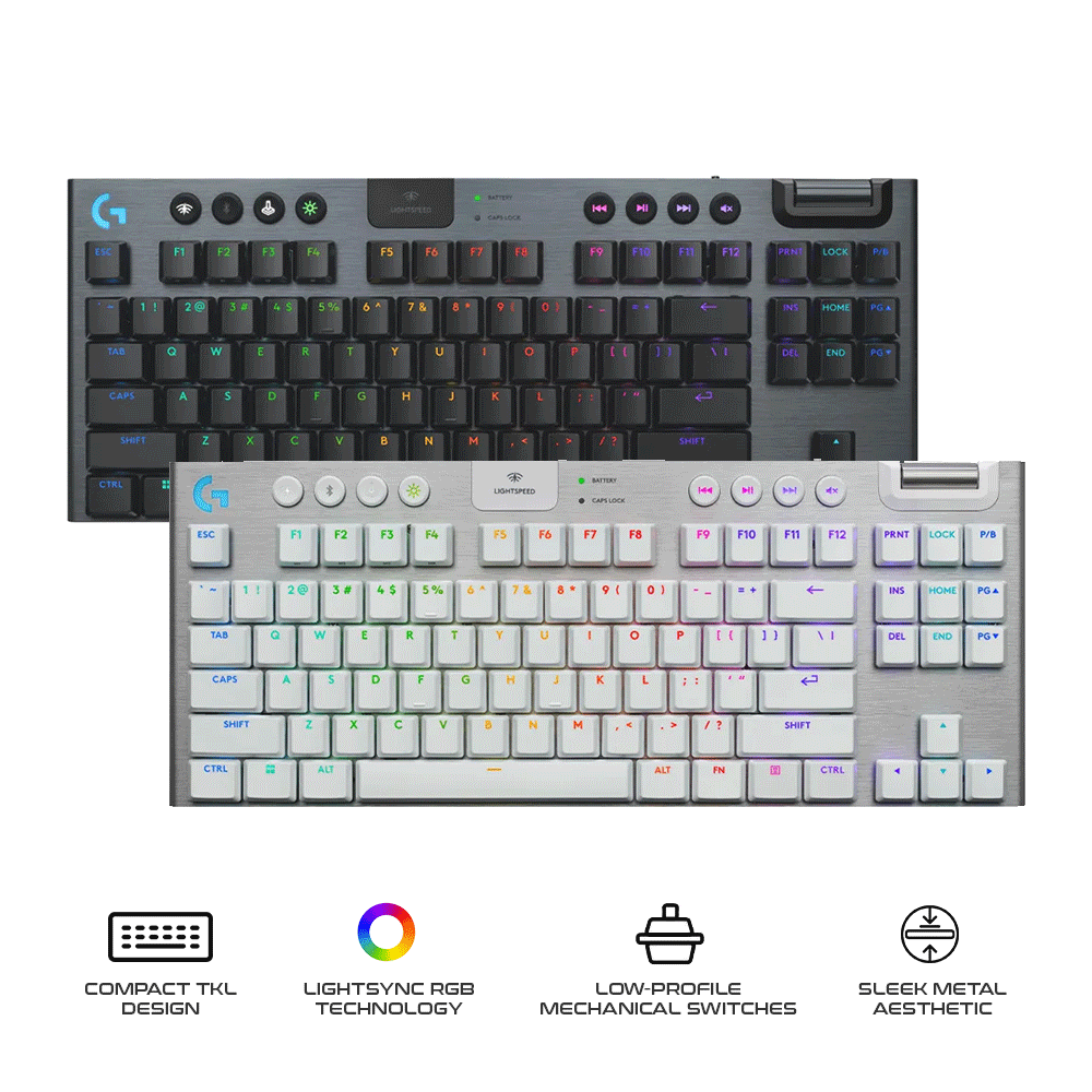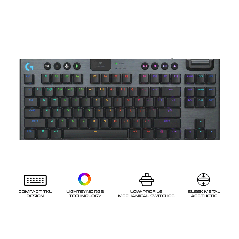 Logitech G915 X LIGHTSPEED TKL delivers iconic speed, accuracy, and customization with a sleek, tenkeyless design. This wireless gaming keyboard features tri-mode connectivity, KEYCONTROL, GL mechanical switches, and LIGHTSYNC RGB.