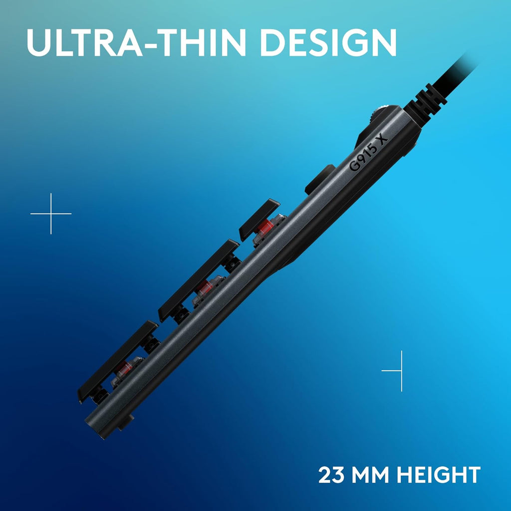 Logitech G915 X delivers iconic speed, accuracy, and customization with a sleek, ultra-thin design. This wired gaming keyboard features KEYCONTROL, GL mechanical switches, and LIGHTSYNC RGB.