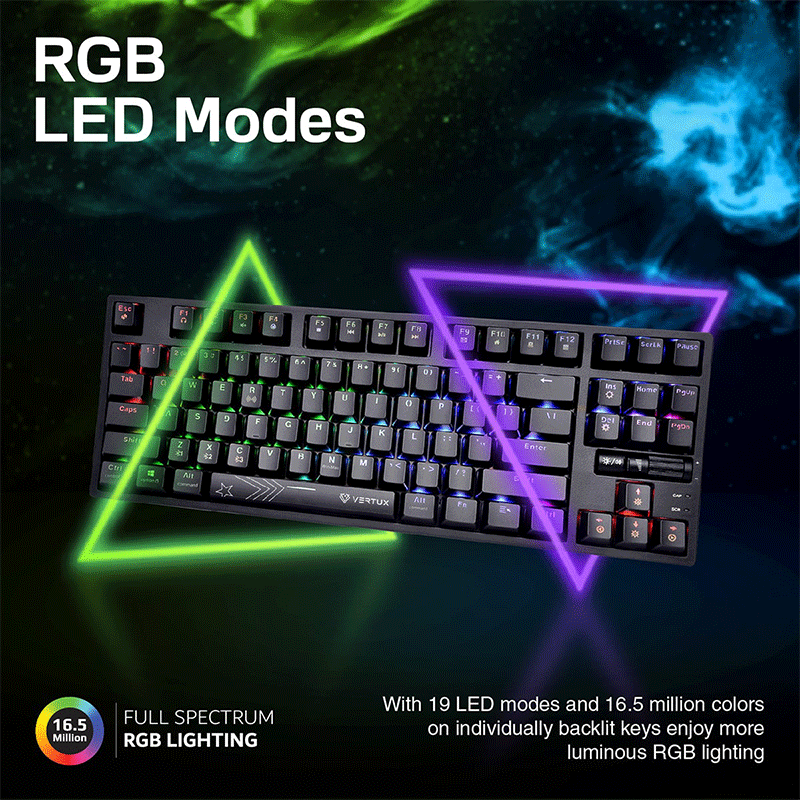 VertuPro-80HyperSpeed Tenkeyless Mechanical KeyboardSuper-fast 1ms performance and compact form factor, VertuPro-80 is engineered to take your gaming experience to the next level. The blue mechanical switches give you audible feedback. Enjoy 12 hours of non-stop game time on a single charge. The detachable cable makes for easy transportation and lets...