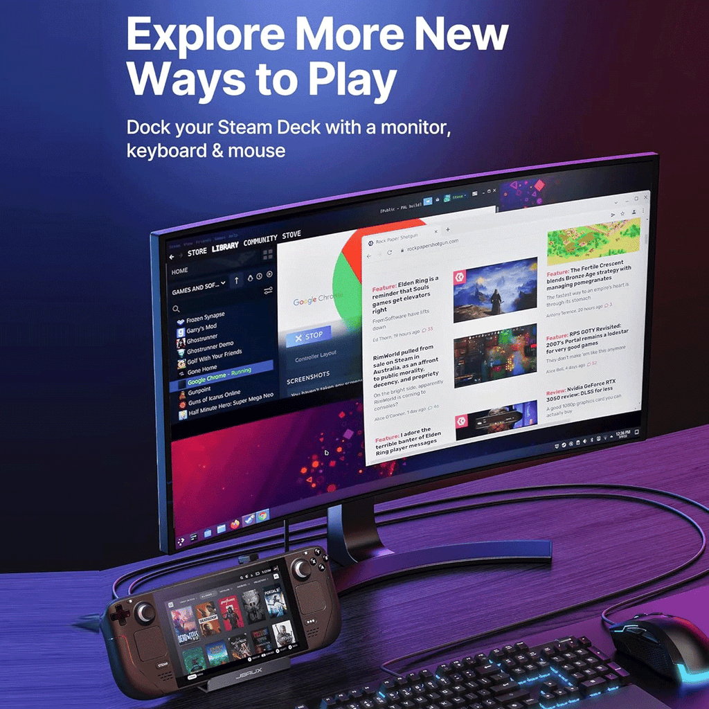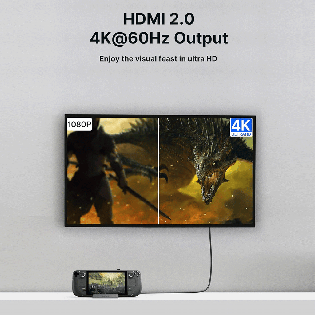 4K@60Hz HDMI Output: The Steam Deck Dock comes with a 4K@60Hz HDMI 2.0 output. When you connect an external 4K monitor, it can provide you sharper and smoother visual experience, so you can enjoy the visual feast on your games