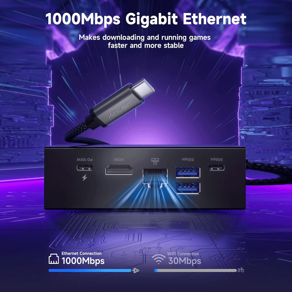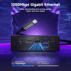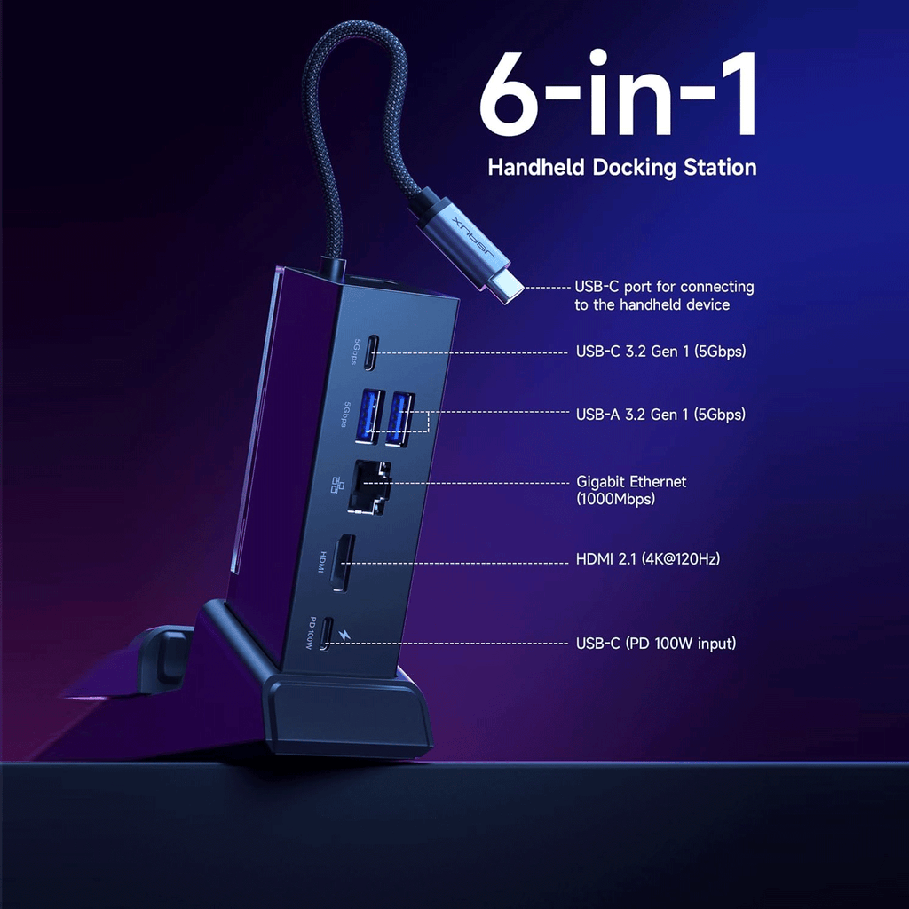 6-in-1 Docking Station for Handheld: Experience enhanced gaming with 4K@120Hz HDMI output, Gigabit Ethernet, USB-C PD charging, USB-C 3.2 Gen 1, and dual USB-A 3.2 Gen 1 ports