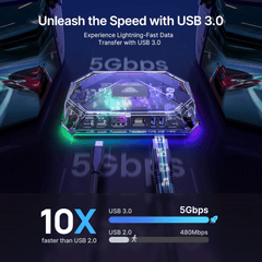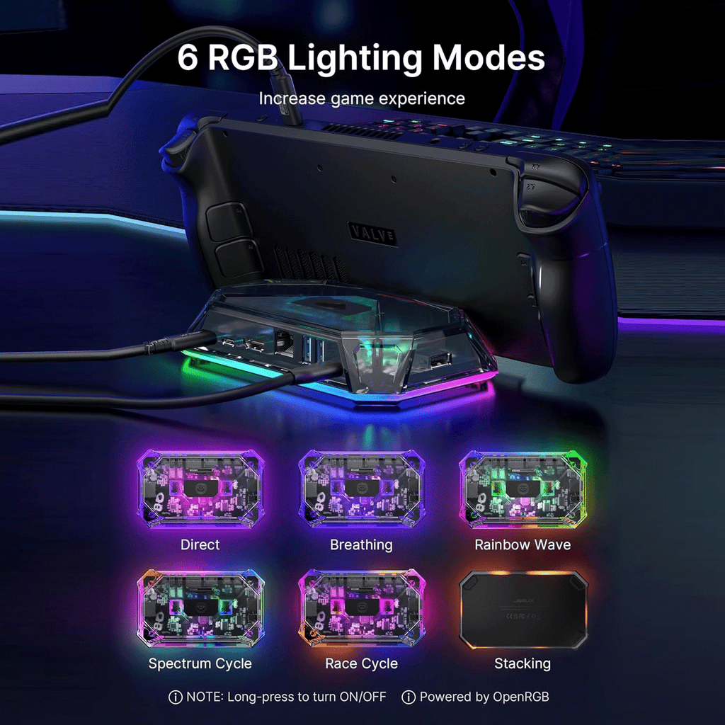 5 Gbps Syncing & 100W Charging: The RGB Docking Station features 2 USB-A 3.0 and 1 USB-C 3.0 ports for 5Gbps syncing. Plus a USB-C PD port delivering up to 100W for Steam Deck (OLED), ROG Ally, Legion Go, MSI Claw, tablets, and laptops