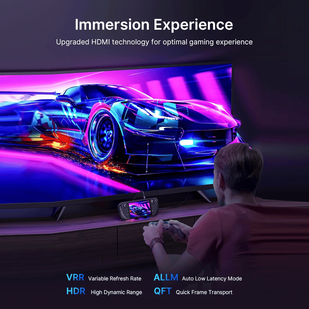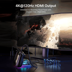4K@60Hz HDMI Output: The Handheld Dock comes with a 4K@60Hz HDMI 2.0 output. When you connect an external 4K monitor, it can provide you sharper and smoother visual experience, so you can enjoy the visual feast on your games
