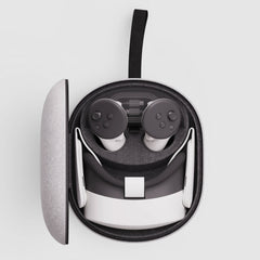 Enjoy your Meta Quest on the go with a hard protective case that takes up less space in your bag, so you can experience VR and mixed reality anywhere. The thoughtful design features an outer felt shell, soft hand strap and contoured inner compartments to keep your gear organized and secure.