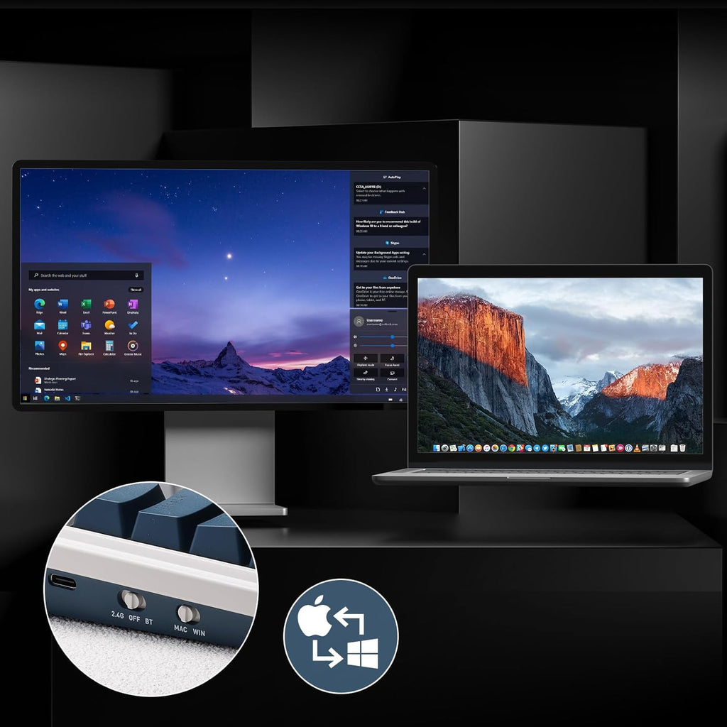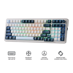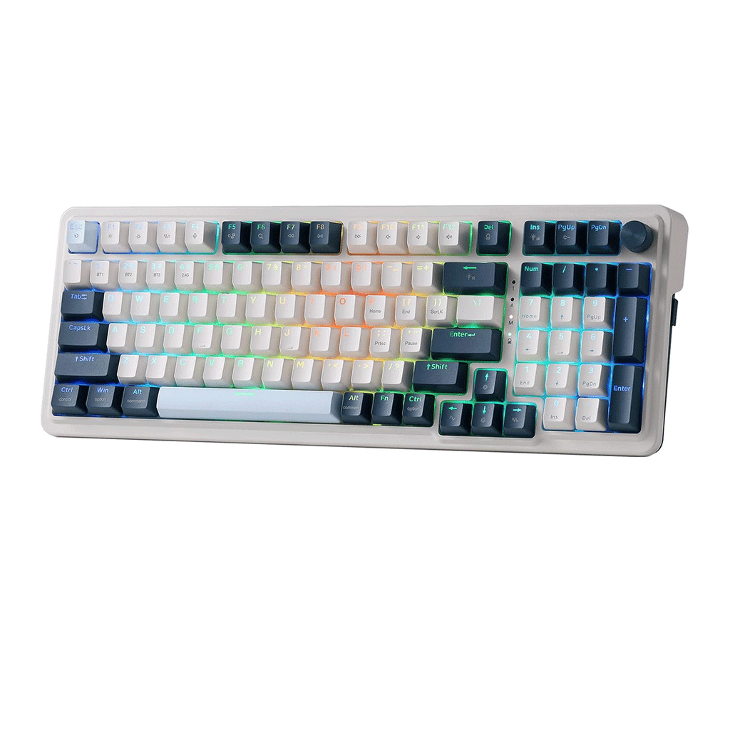 96% 98 Keys Wireless Gasket RGB Gaming Keyboard3-Mode Compact Mechanical KeyboardDedicated Knob ControlSound Absorbing PadsHot-Swap SocketLinear Red SwitchBlue Himmel Color