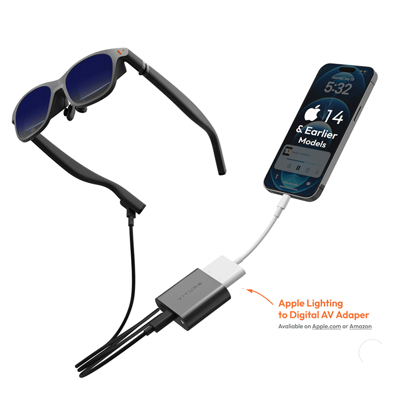 Pairs With Apple's Digital AV To Lightning Adapter To Connect Lightning iPhone Models And Bring The Magic To VITURE XR. Glasses.