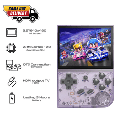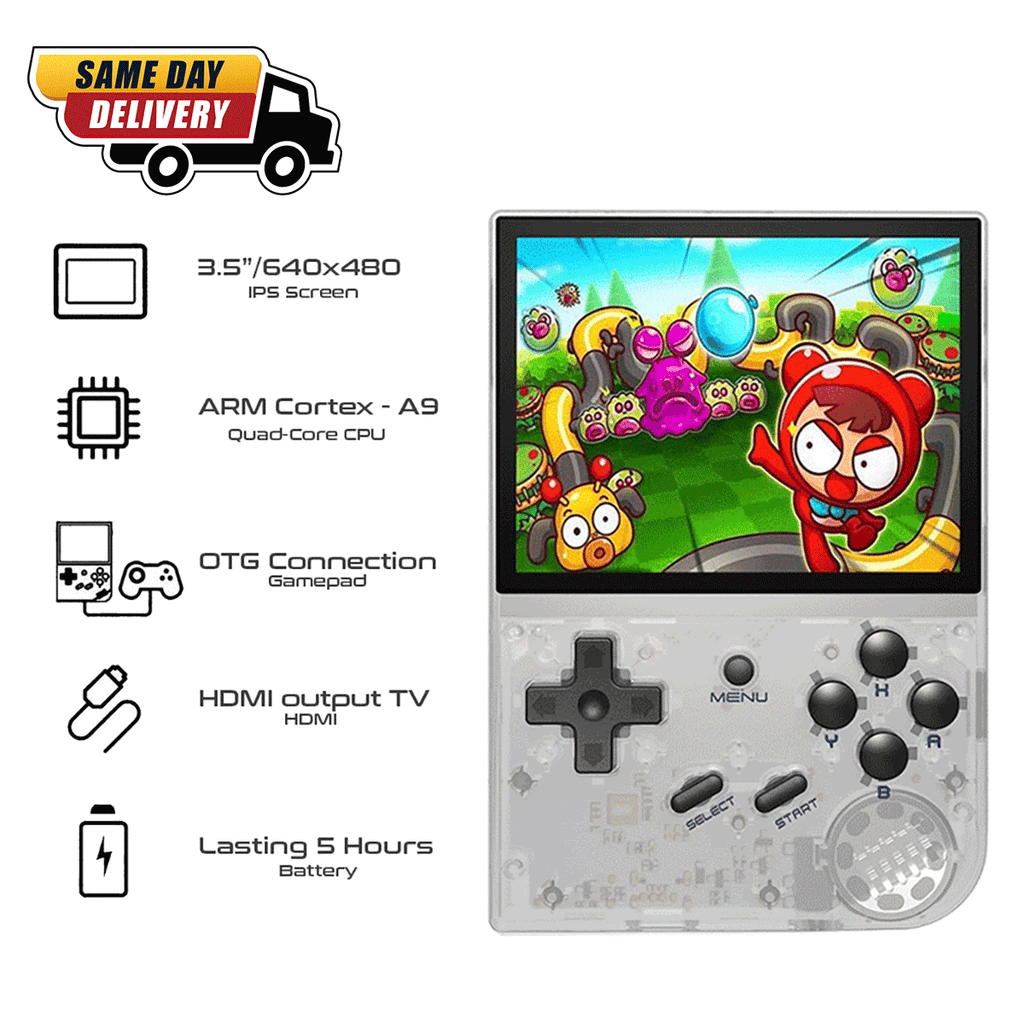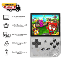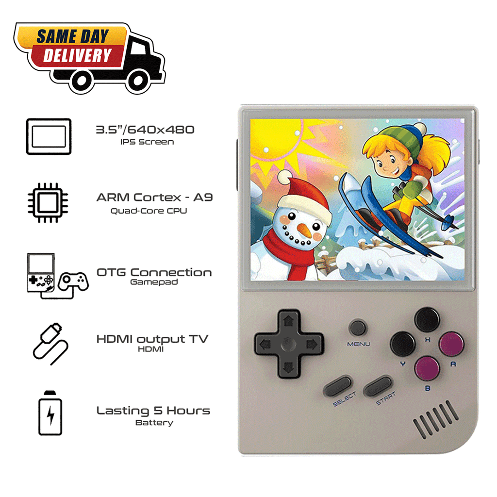 RG35XX Retro Gaming Handheld: RG35XX classic video game console, RG35XX features a 3.5-inch IPS full video screen with OCA full lamination process. 640*480 resolution. The main body weighs only 165g, making it more portable.