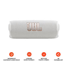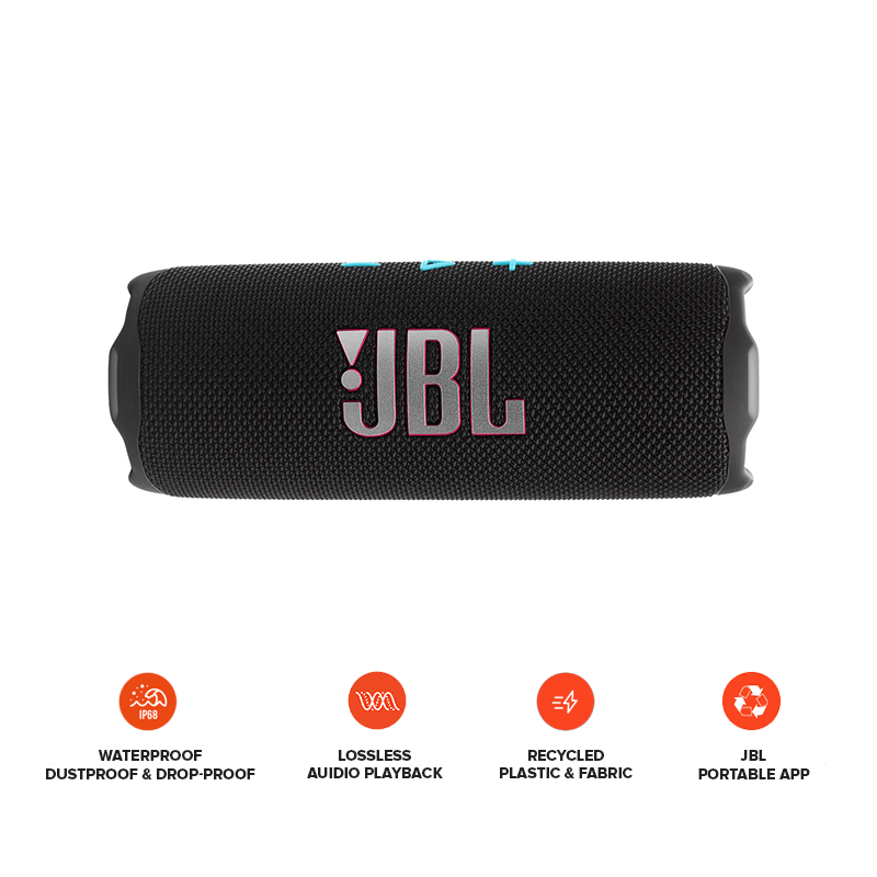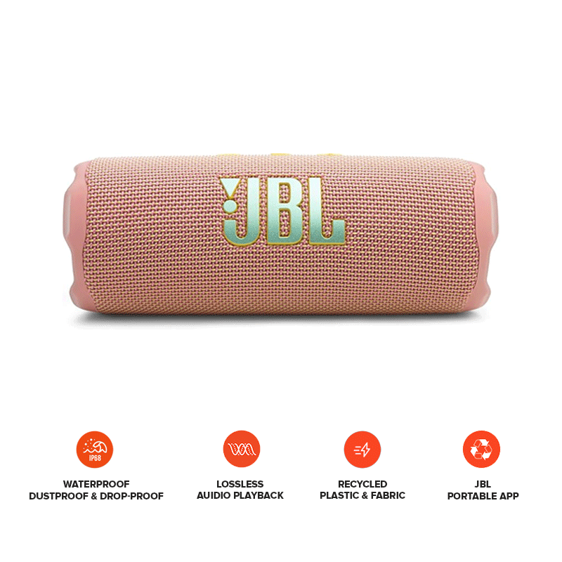 The soundtrack to our life, right in the palm of our hands. The JBL Flip 7 is undefeated JBL sound that travels with us wherever we go. Because music has no boundaries, and neither should we. Whether we're hosting a beach party, relaxing in our backyard, or setting the mood for a cozy night in, the Flip 7 is designed to enhance any experience, anywhere life takes us. And now, our signature sound is bigger and bolder than ever, thanks to JBL's AI Sound Boost. The end result? The Flip 7 leaves our friends and family wondering where all that big, glorious sound could possibly be coming from. But it's not just pretty and powerful. The Flip 7 takes a beating without missing a beat, boasting industry-leading IP68 waterproof, dustproof and drop-proof. Plus, with new Playtime Boost we can enjoy up to 16 hours of playtime—because the moment should only ever stop on our terms. Wouldn't it be great to share the sweet sound of JBL far and wide? Now we can. Effortlessly connect with other Auracast™ enabled JBL speakers to cover more ground (and more ears) with the same playlist, whether we're touring the town with our cycling crew or extending our dinner party to the back patio... and the front yard. In short, this is not the average portable speaker. It's a pint-sized audio boss.