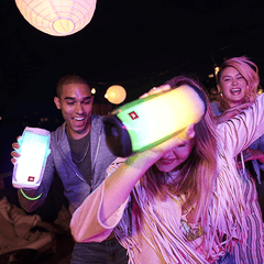 Sound you can see Kick start your party with JBL signature sound and a dazzling LED light show all in 360 degrees. Our bold, IPX7 waterproof design shines bright and will keep the tunes flowing for up to 12 hours on a single charge. Tap the JBL Connect App to...
