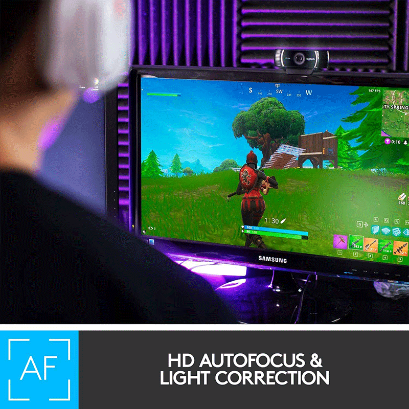 Serious streamers need the hyperfast frame rate of 60 fps at 720p for particularly smooth video, and that’s just what the C922 delivers. You'll be live broadcasting with no lag or distortion.