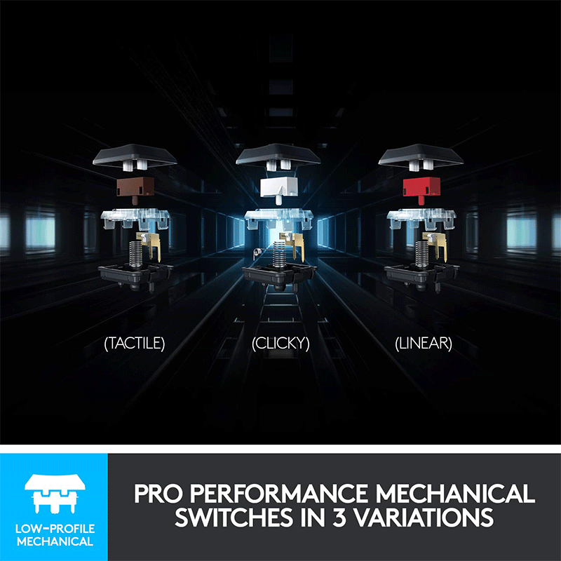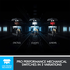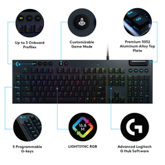Advanced gaming technologies in a sophisticated ultra-thin design. Fully customizable, equipped with LIGHTSYNC RGB and dedicated G-keys. Engineered for high-performance gameplay with low-profile GL mechanical switches in clicky, tactile, and linear variations. Experience G813 and play the next dimension.