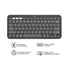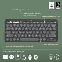 We don’t just stop at a unique design, we make sure that our products are responsibly made too. The Pebble Keys 2 comes in a range of colors made with more than 45% recycled plastic 18Pebble Keys 2 K380s plastic content: minimum 49% recycled plastic, excluding plastic in printed wiring assembly (PWA) and packaging so you can choose a color that fits your vibe.