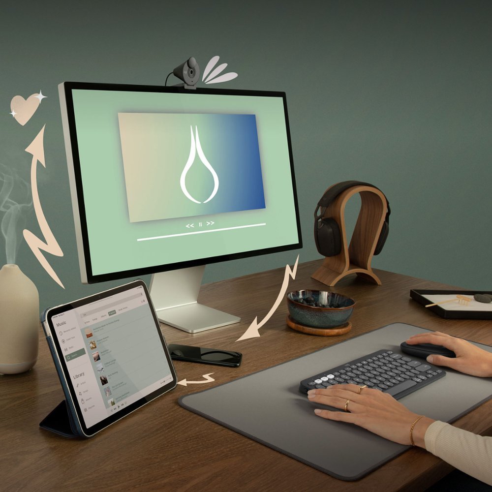 Use Bluetooth to connect up to 3 wireless devices across OSs (Windows, macOS, iPadOS, ChromeOS), and switch between them with the mouse’s Easy-Switch button.