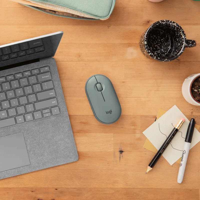 Logitech Pebble M350 modern design fits your curated lifestyle, accents your desk setup, and is slim enough to toss in your bag and bring to the coffee shop.