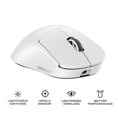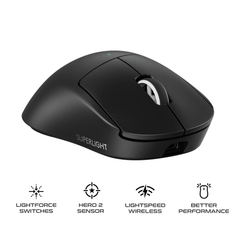 PRO X SUPERLIGHT 2 DEX is a 60 g asymmetrical mouse featuring advanced HERO 2 sensor, robust LIGHTSPEED wireless, and LIGHTFORCE switches while delivering up to 95 hours of battery life.