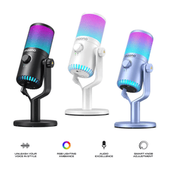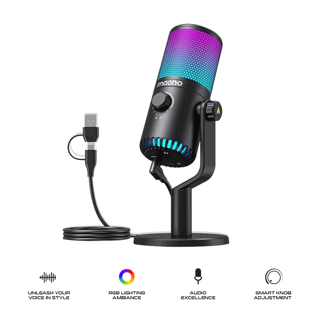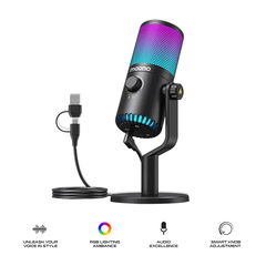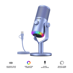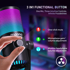 Award-winning Maono DM30 RGB USB Condenser Microphone features a premium all-metal construction with sophisticated RGB lighting. Its innovative 3-in-1 knob interface provides seamless control, while the professional-grade condenser capsule delivers exceptional audio clarity. Perfect for gaming sessions, podcast recordings, and content creation where both performance and aesthetics matter.