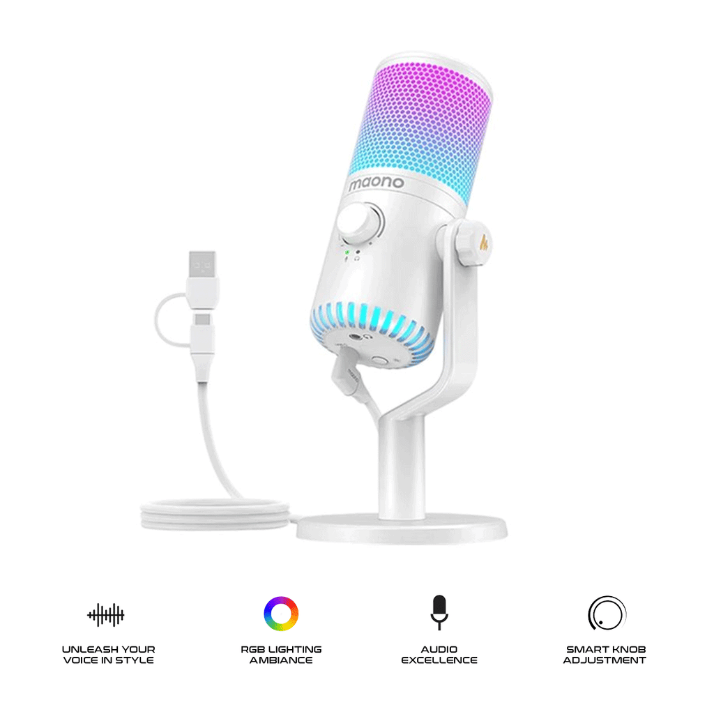Award-winning Maono DM30 RGB USB Condenser Microphone features a premium all-metal construction with sophisticated RGB lighting. Its innovative 3-in-1 knob interface provides seamless control, while the professional-grade condenser capsule delivers exceptional audio clarity. Perfect for gaming sessions, podcast recordings, and content creation where both performance and aesthetics matter.Modle TypeDM30RGB Connector TypeUSBWhere...