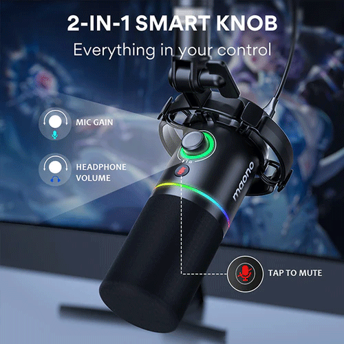 Its cardioid pattern effectively eliminates background noise, while the innovative 2-in-1 smart knob provides precise control over gain and headphone volume.