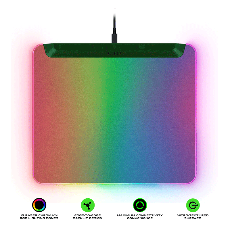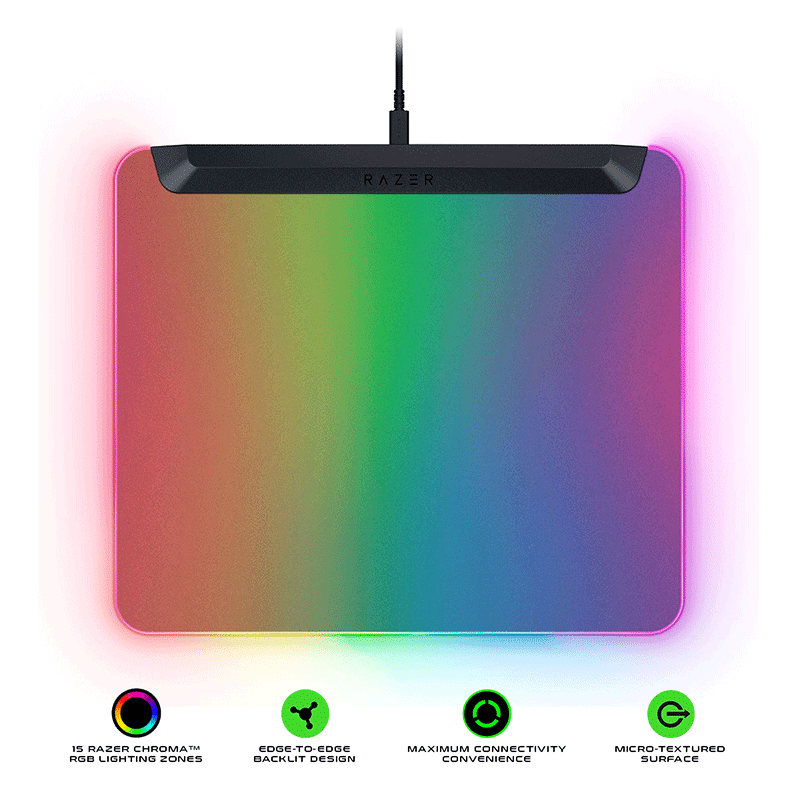 Armed with 15 individually customizable lighting zones powered by Razer Chroma™ RGB, the mat blazes bright as an RGB accessory, or as a cutting-edge addition to your RGB battle station.