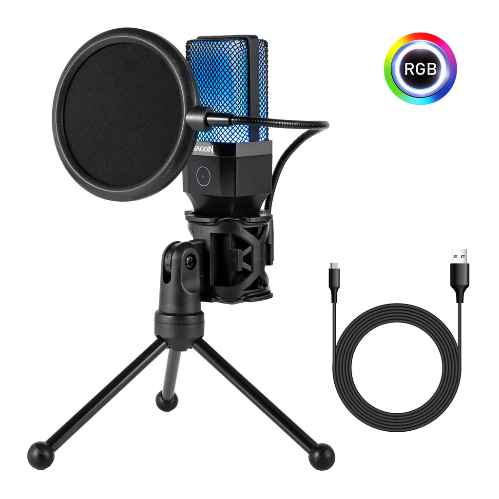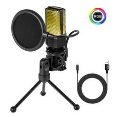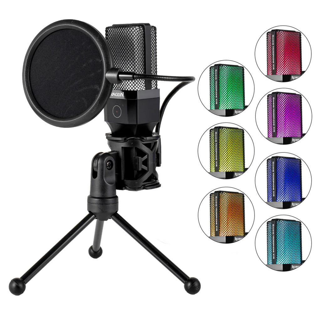 Transform your gaming setup with the vibrant bicolored RGB lighting on USB microphone, which gracefully cycles through stunning color.  The PC microphone not only adds a lively atmosphere to your computer setup but also immerses you deeper into the intensity of the game.