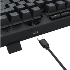 The Redragon Crescent K524-RGB delivers professional-grade gaming performance with its mechanical switches and customizable RGB backlighting. This full-size keyboard features programmable keys, allowing you to optimize your setup for competitive play or everyday typing. The durable construction and responsive switches ensure reliable performance during extended gaming sessions. With intuitive controls and a sleek black design, the Crescent seamlessly integrates into any gaming battlestation while maintaining the precision and responsiveness serious gamers demand.
