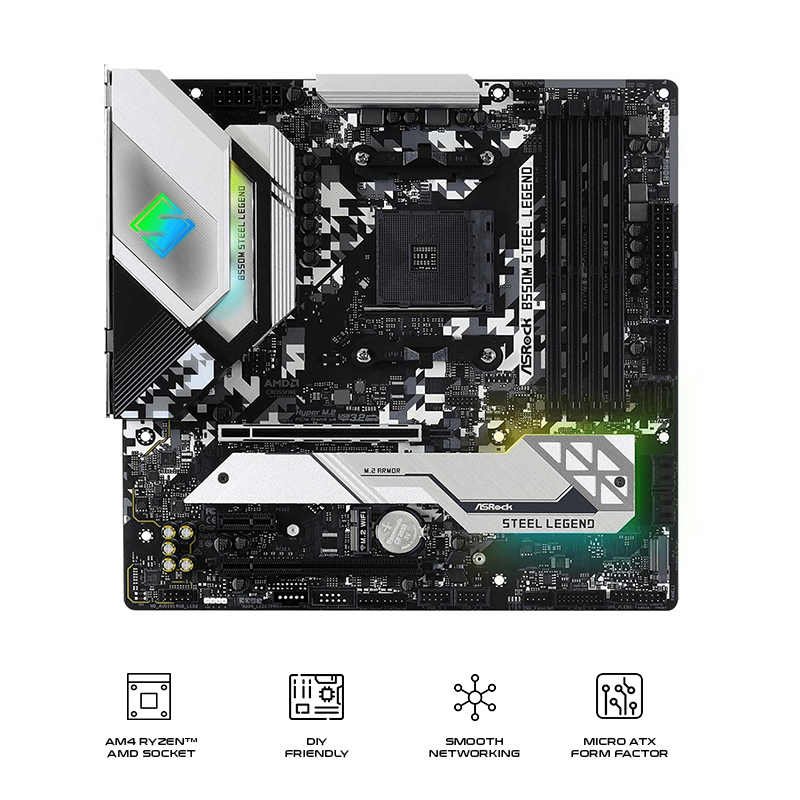 Supports AMD AM4 Socket Ryzen™ 3000, 3000 G-Series, 4000 G-Series, 5000 and 5000 G-Series Desktop Processors*