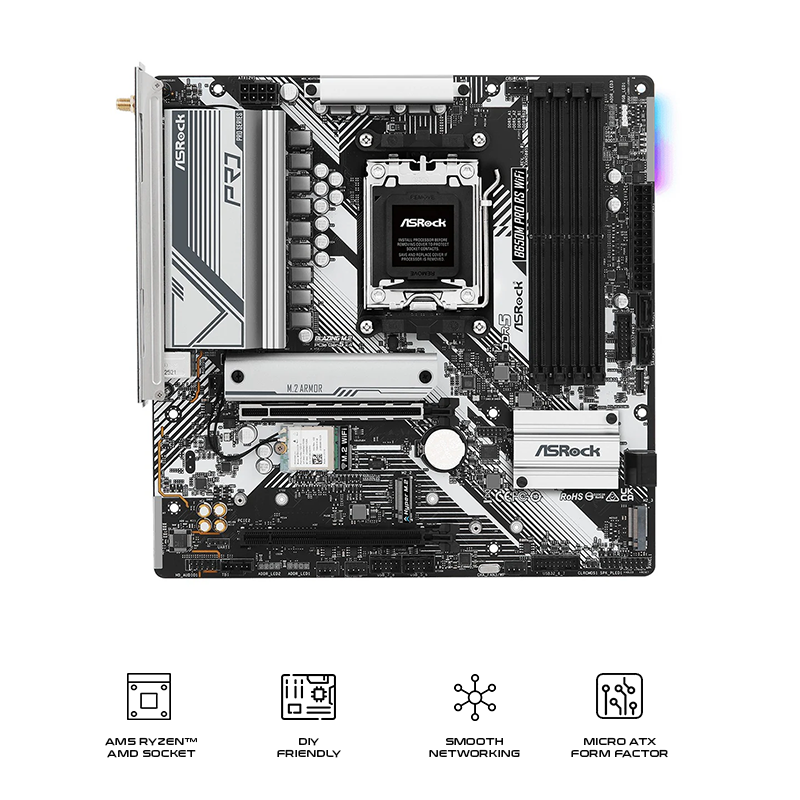 - Supports AMD Socket AM5 Ryzen™ 8000 and 7000 Series Processors*
