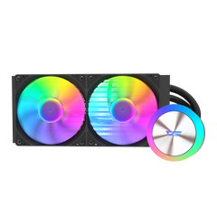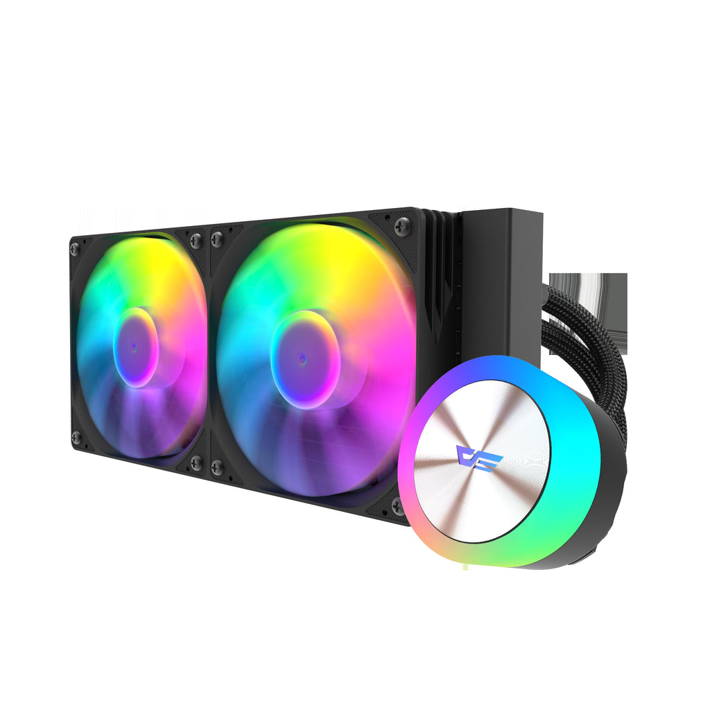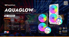 The DarkFlash AquaGlow DG240 ARGB V2.6 Liquid CPU Cooler combines advanced cooling performance with customizable ARGB lighting. Featuring a copper-based water block for efficient heat transfer and a luminous design, it ensures optimal CPU temperatures while enhancing your build’s aesthetics. Its daisy chain connection supports multiple cooling fans, simplifying installation and cable management. Fully compatible with both Intel and AMD platforms, this cooler delivers reliable, expert-level thermal management for high-performance systems.