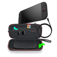 The Dobe NSW2 Storage Case (Black) TNS-3173 is a protective carrying case specifically designed for the Nintendo Switch 2 console. Crafted from durable EVA material, this case offers robust protection against scratches, dust, and minor impacts, ensuring the safety of your device during transport.