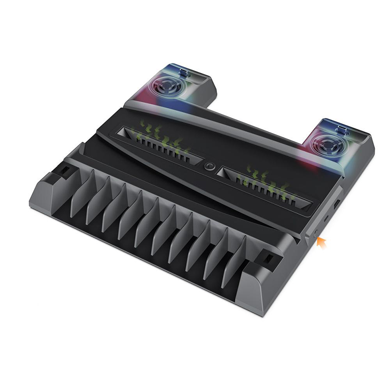 Don't let your console heat up or your DualSense lose charge in the heat of your gaming session with the Dobe Multi-Functional Cooling Stand for PS5 Black (TP5-0593)!