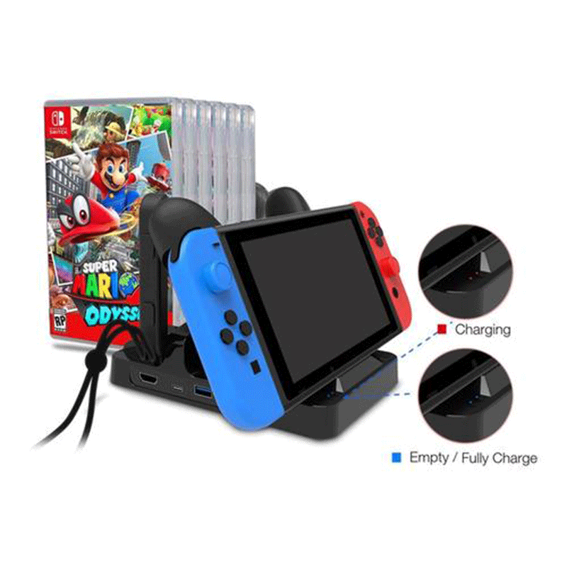 Compatible for Nintendo Switch Console & Switch Pro Controller & Switch Game Cards, This charging stand for NIntendo Switch can replace original dock’s all functions like HDMI, USB, CHARGING etc. It cans also store up to six disc box.