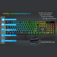 Rainbow Backlit & RGB Sidelight: The keys light has 10 backlight operation modes (Fn+Ins switch), support custom mode(FN+(9, 0); Backlight brightness and speed can also be adjusted. There are 5 modes for RGB side light (Fn+Pause). The color and speed can be adjusted by (FN+(—)/(=+)).