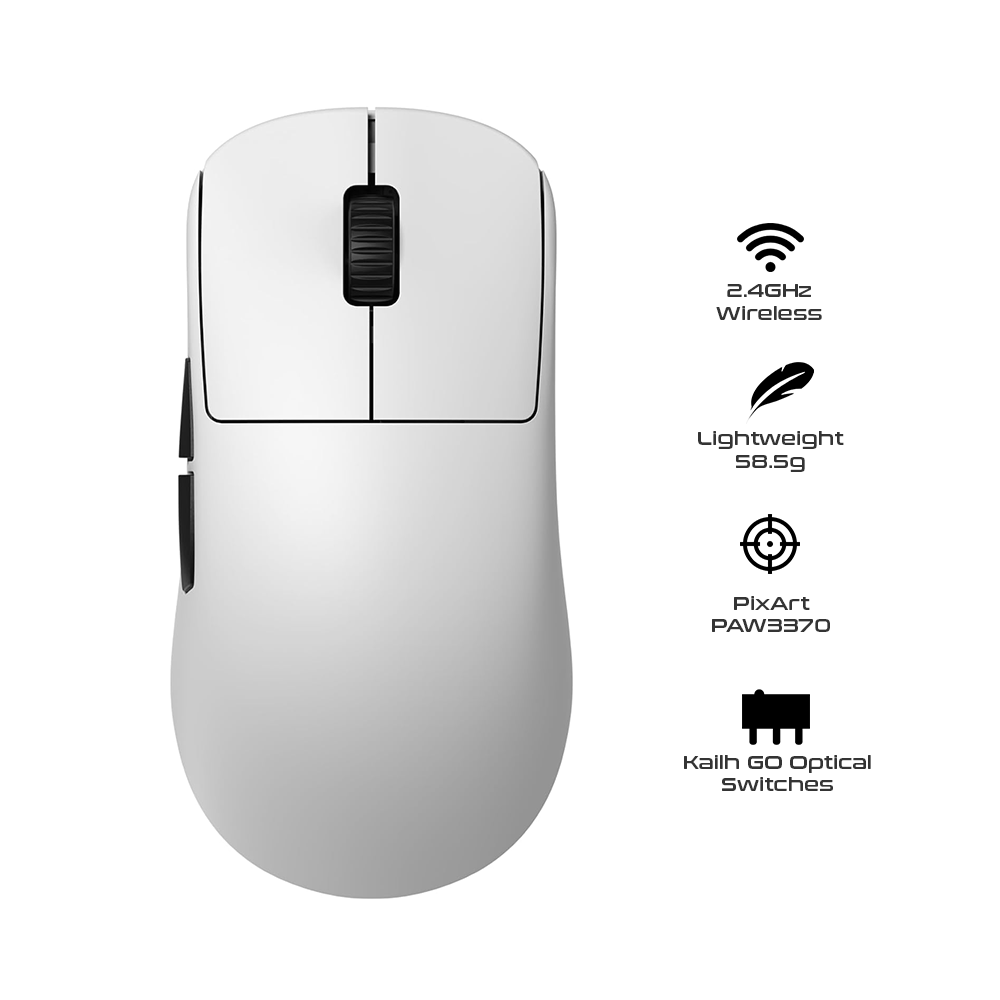 Immerse yourself in a superior gaming experience with the OP1we's upgraded scroll wheel switch and side buttons. The meticulously refined scroll wheel switch delivers improved responsiveness, ensuring precise control and seamless scrolling. Additionally, the redesigned side buttons, equipped with Kailh GM2.0 switches, offer enhanced durability and a satisfying click response, giving you an edge in intense gaming situations.