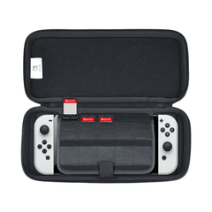 Travel in style with HORI's Slim Tough Pouch compatible with the Nintendo Switch and Nintendo Switch - OLED Model. This slim, lightweight pouch places a premium on protection as it is both tough and durable. Holds up to 10 game cards with room for other items you may need on your campaigns. Officially Licensed by Nintendo.