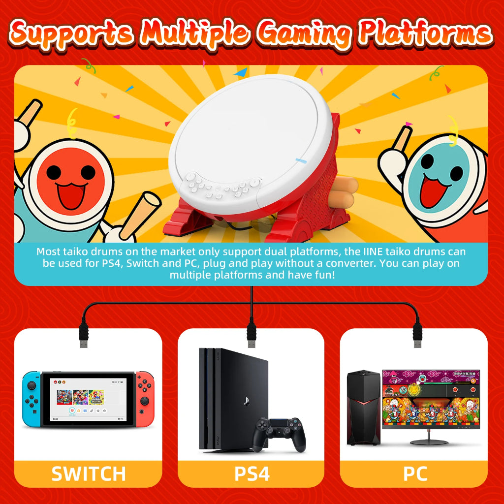 IINE Taiko Drum MasterBeyond the feel of original product. Specially designed bayonetWhile putting the water bottle to increase the load, Drumsticks can also be stored. Specially designed drum standThe widened structure can make the Taiko more stable, but also in the gap add iron weights. Standard plastic drum stickThe novice...