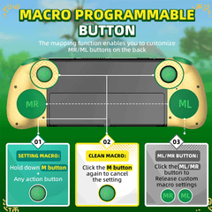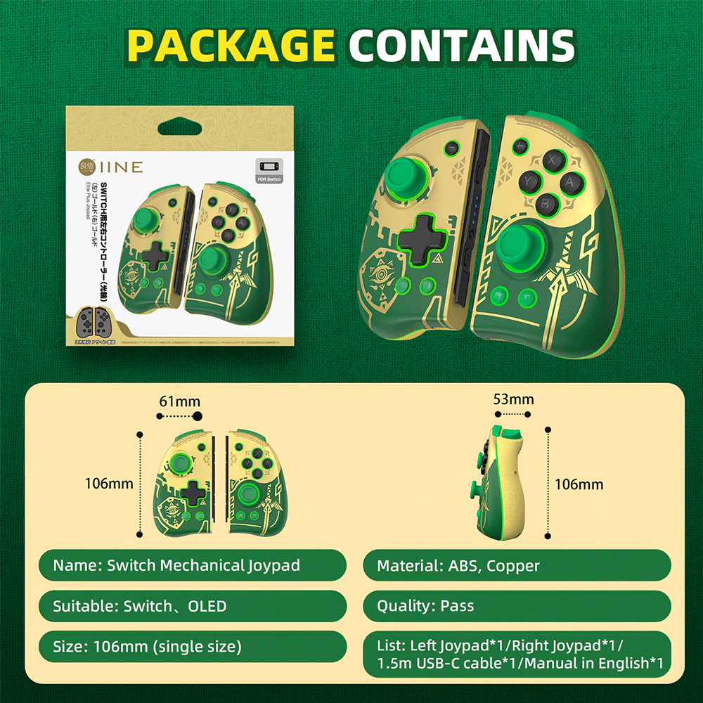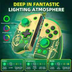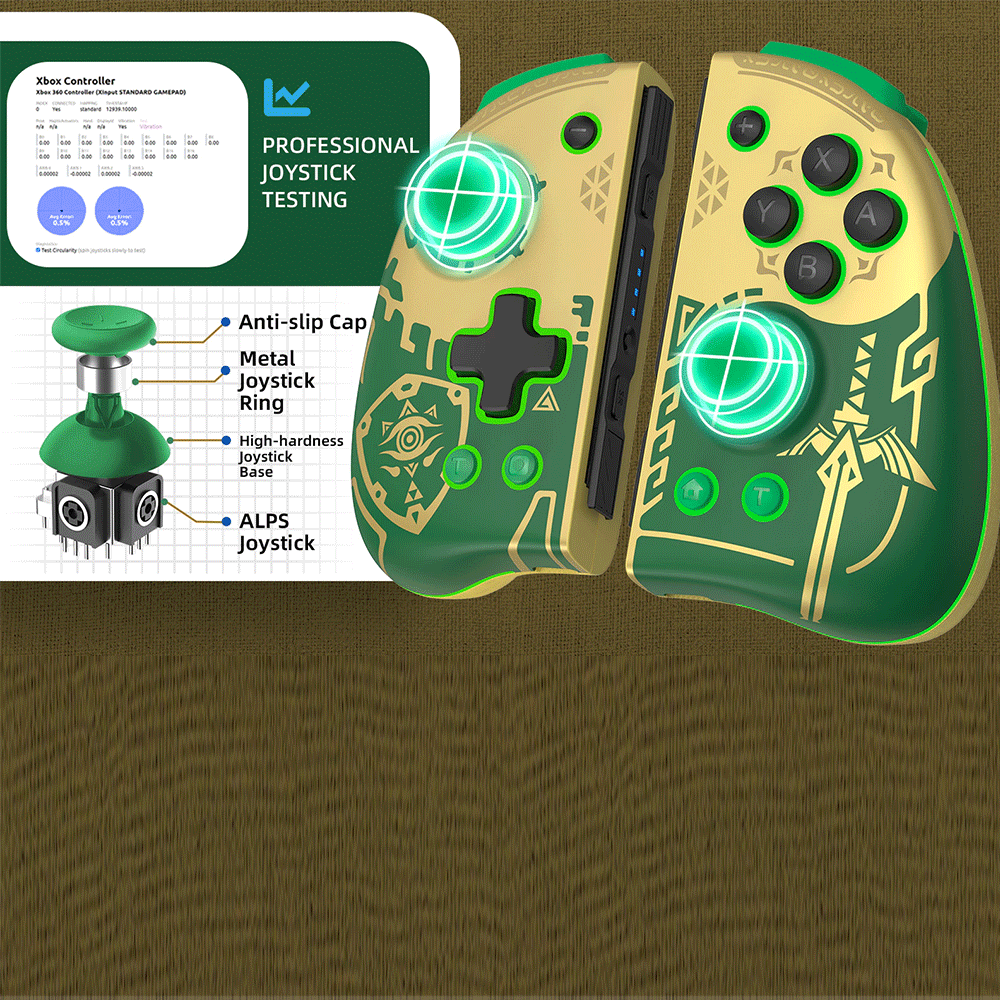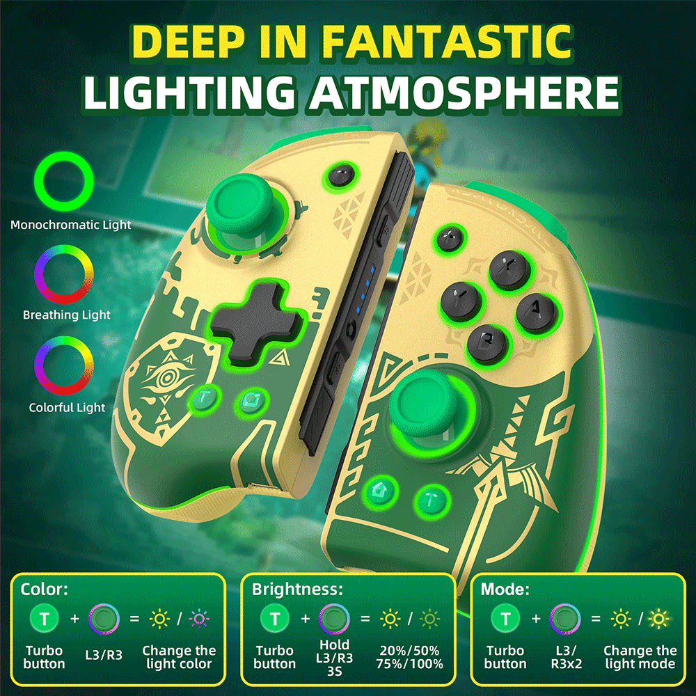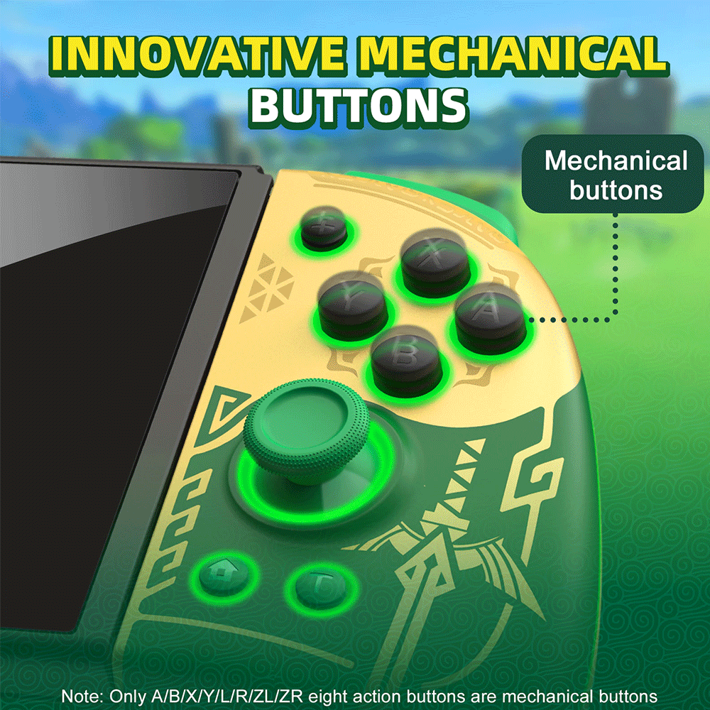 Game button mechanicsElephants analog stickRing light colorsWake up functionHandhelp mode/Bluetooth wireless connectionAuto-fireSpecialized custom macro button settingSpecial vibration adjustment buttonMotion sensor & 6-axis gyro sensor (support like NS sports/mario party/just dance/marioKart, etc.)Switch/OLED support