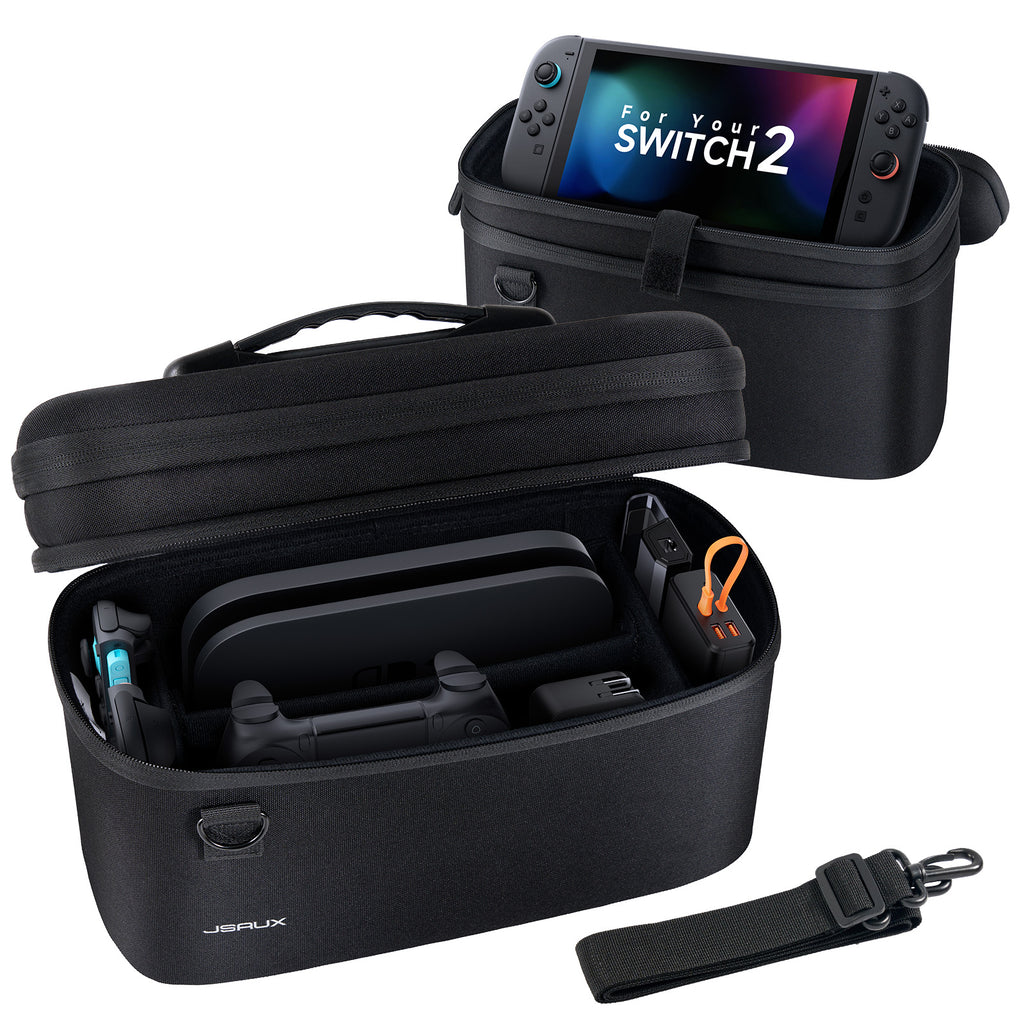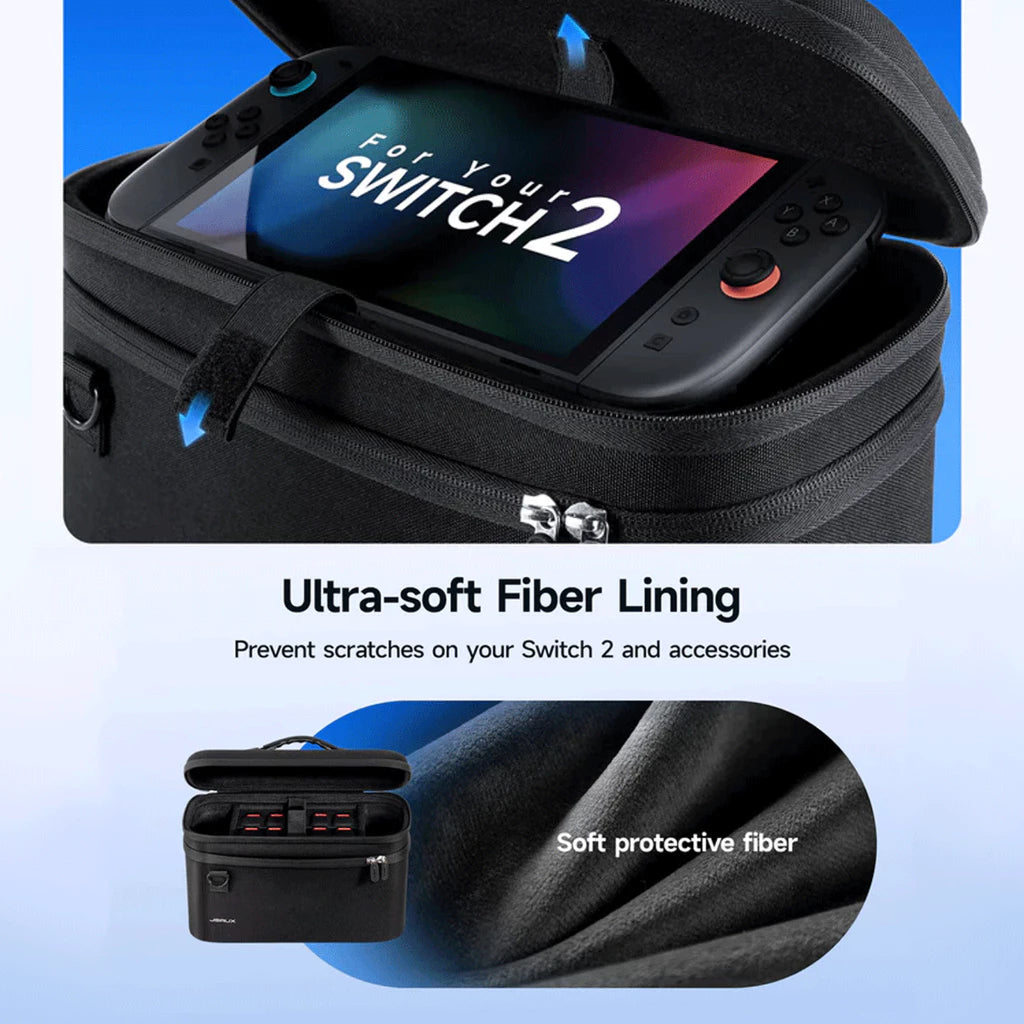 Specifically designed to fit your complete Switch 2 setup, including console, Joy-Con controllers, dock, grip, charging cables, and up to 20 game cards. Stay fully equipped wherever you go.