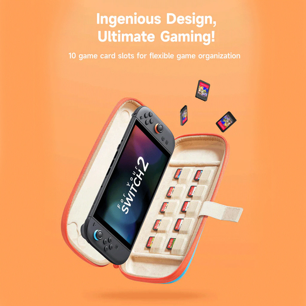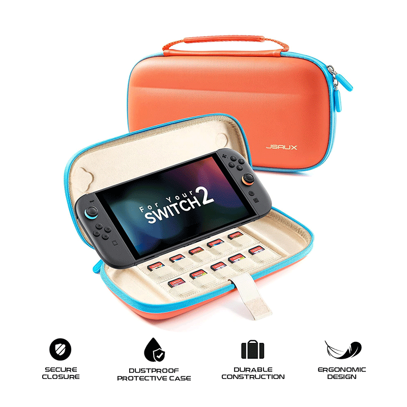 Perfect Fit: JSAUX case is custom-designed for Nintendo Switch 2, with an EVA inner lining that perfectly conforms to the console. Features dedicated storage slots to securely hold your Switch 2 console and up to 10 game cartridges, ensuring your favorite games are always within easy reach