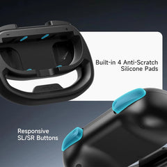 Ergonomic and Comfortable Design: The steering wheel is ergonomically designed to provide a comfortable grip. The SL and SR buttons respond quickly, delivering an excellent gaming experience. The anti-slip texture protects your JoyCon controller from slipping, allowing you to enjoy long gaming sessions comfortably. It also extends the lifespan of your JoyCon Controller