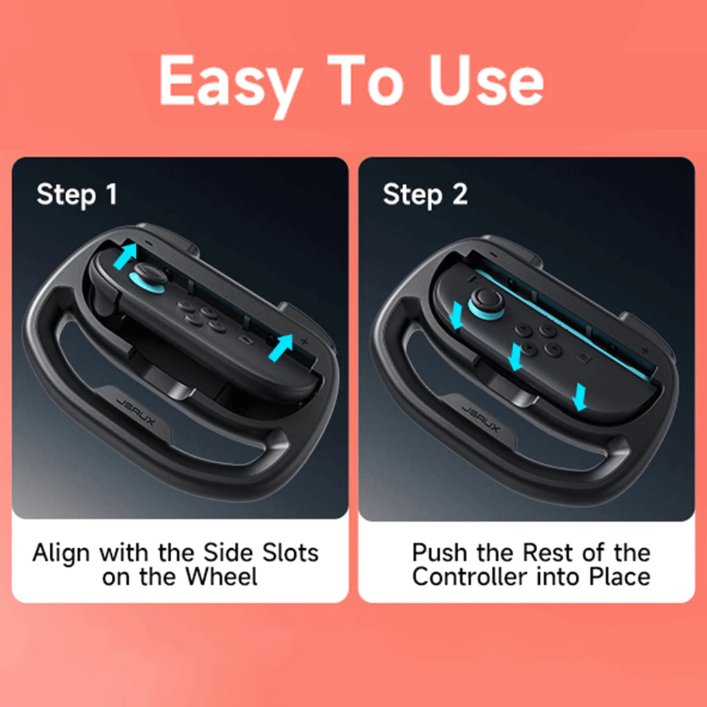 Plug and Play, Easy Setup: No tools or complicated setup required. Simply align the Joy-Con with the wheel slot and insert to start using. Enjoy family game parties with ease and have fun playing together