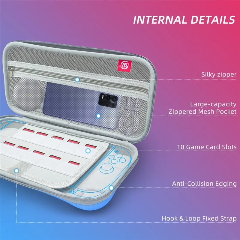 Accommodates up to ten game cartridges and various small accessories, keeping your gaming essentials organized.